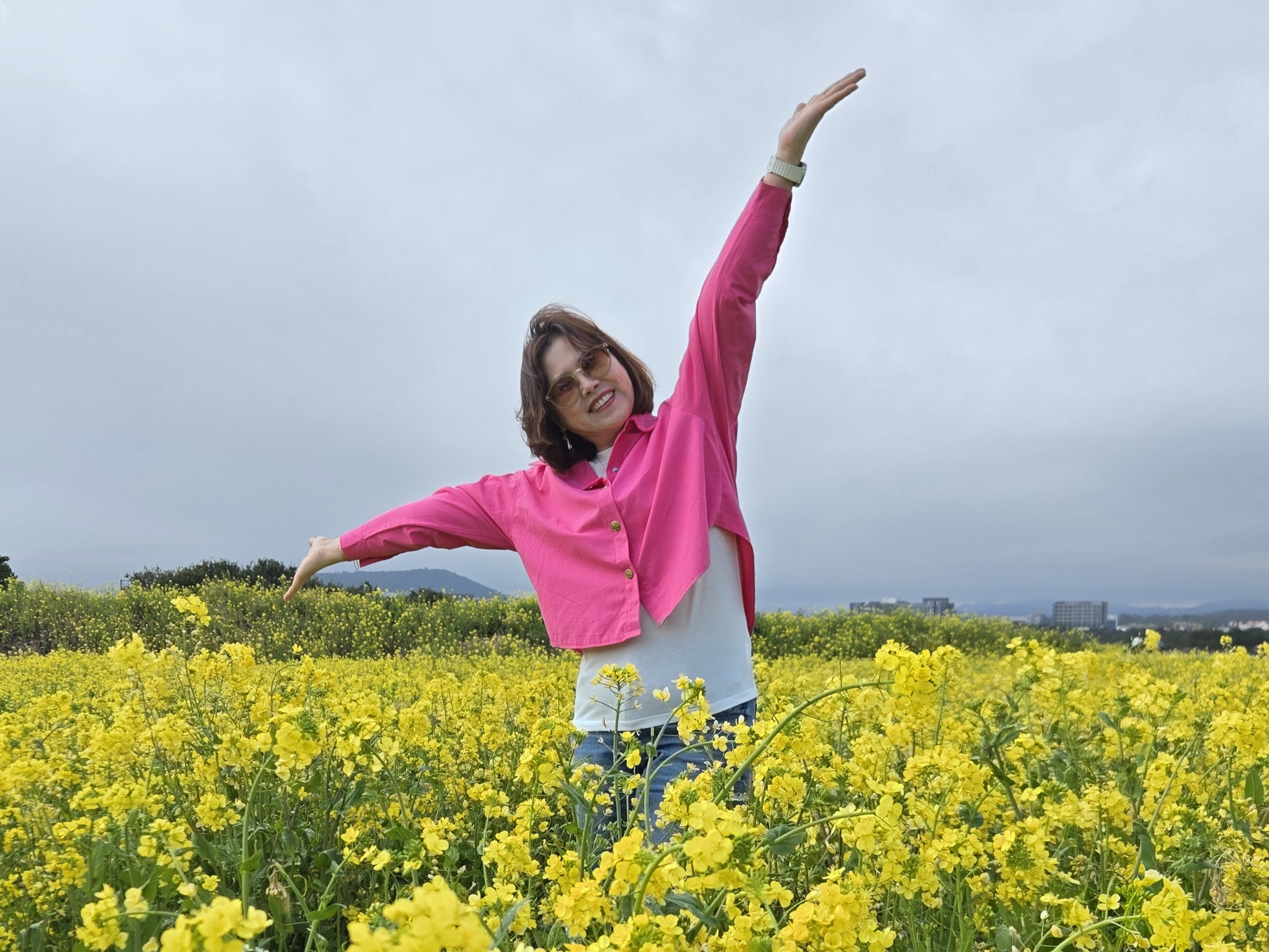다음날 비소식이 있었지만, 기적처럼 비가 걷히고 눈앞에는 가장 기대했던 노란 유채꽃밭이 끝없이 펼쳐져 있었습니다.