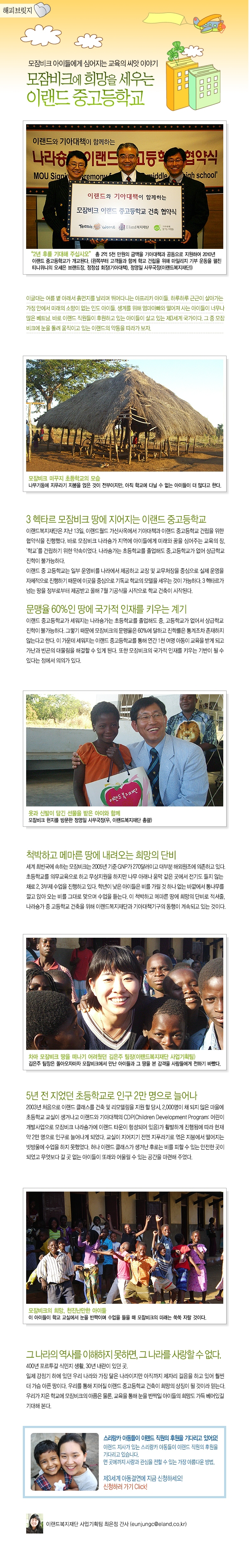 모잠비크에 희망을 세우는 이랜드 중고등학교