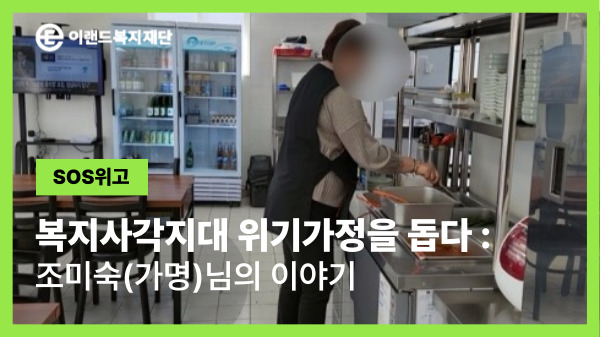 SOS위고와 함께 소외된 이웃들에게 힘이 되어주세요. ![]() * 본 사연과 사진은 이랜드복지재단이 사례자의 동의를 얻어 게재하는 것임을 밝힙니다. SOS위고 문의: 02)2644-0110 |