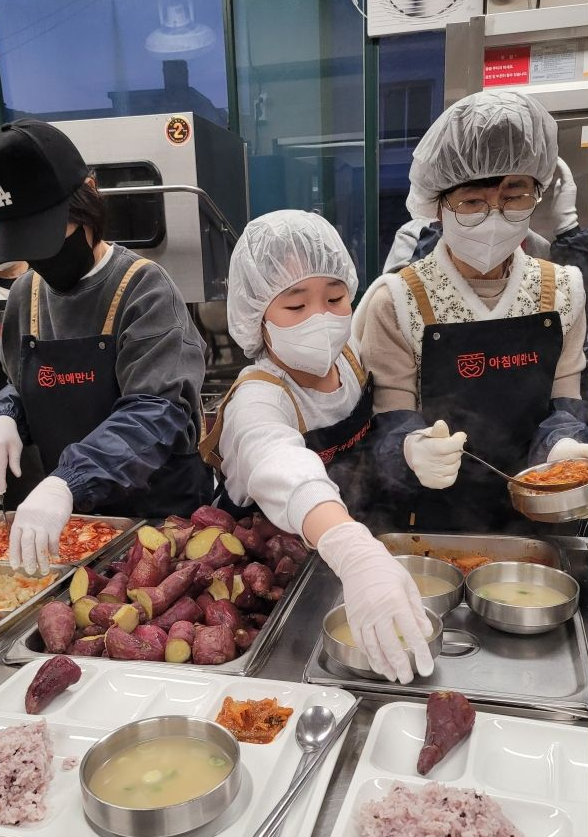 새벽 첫차로 서울역 간 꼬마들… 노숙인 급식소서 배운 ‘나눔’[아살세] 방학 아침 새벽 첫차 타고 서울역 향한 초등 자매 무료급식소 ‘아침애만나’ 온 가족이 배식 봉사 어르신 격려와 작은 사탕 하나가 남긴 기억 ![]() 아직 어둠이 채 걷히지 않은 새벽 6시 20분. 최근 서울 중구 서울역 인근 무료급식소 ‘아침애만나’에 초등학생 자매가 부모와 함께 배식 봉사를 위해 찾아왔다. 문을 열자 갓 지은 밥 냄새와 국 끓는 소리가 먼저 맞이했다. 주방에서는 봉사자들이 식판을 준비했고 이용자들이 하나둘 들어오며 아침 식사가 시작됐다. 인천에 사는 조수아(12), 아인(10) 자매는 이날 봉사를 위해 새벽 4시 40분에 일어나 서울역을 향하는 첫차를 탔다. 졸린 눈을 비비면서도 전날 미리 준비해 둔 활동하기 편한 옷을 챙겨 입고 간단히 세수한 뒤 배식 봉사에 필요한 마스크를 챙겼다. 이랜드복지재단이 운영하는 아침애만나는 무료급식의 사각지대에 놓이기 쉬운 아침 식사에 초점을 맞춘 공간이다. 노숙인과 쪽방촌 주민, 일용직 근로자, 결식 우려 이웃에게 따뜻한 음식을 제공하기 위해 2024년 7월 문을 열었다. ![]() 현재 조식 기준 하루 평균 380명이 이용하고 있으며 중식과 석식을 포함하면 하루 평균 650명이 이곳에서 식사한다. 운영 방식도 일반 무료급식소와는 다르다. 줄을 서서 배식을 받는 대신 이용자가 자리에 앉으면 자원봉사자가 식판을 직접 식탁으로 가져다준다. 봉사자들은 음식을 건네며 “좋은 아침입니다” “맛있게 드세요”라고 인사를 전하며 한 사람 한 사람을 손님처럼 맞이하려 노력하고 있다. 이날 수아는 식판에 고구마를 올리는 일을 맡았고 아인이는 수저를 놓는 역할을 맡았다. 작은 손으로 반복해 식판을 채우는 일은 생각보다 쉽지 않았다. 서서 하는 일이 힘들었지만, 자매는 약 한 시간 반 동안 묵묵히 자리를 지켰다. 현장에서는 따뜻한 격려가 이어졌다. 한 봉사자는 아이들이 새벽 시간에 일어난 이야기를 듣고 “더 자고 싶었을 텐데 기특하다”고 칭찬했다. 계단에서 줄을 서 있던 어르신들도 “인사 잘한다” “고사리 같은 손길로 봉사하니 고맙다”고 격려했다. ![]()